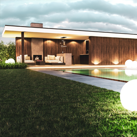 - Pool house met gastenverblijf + gym (exterieur + interieur)
