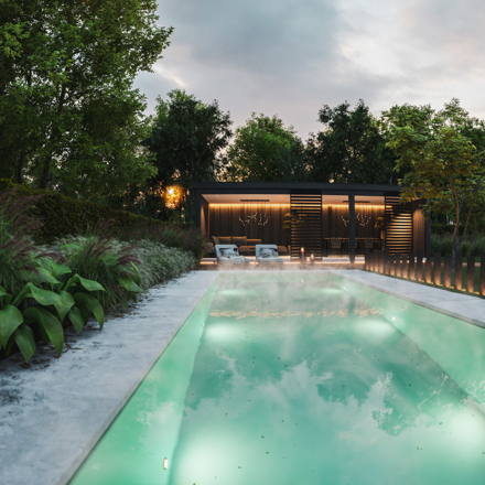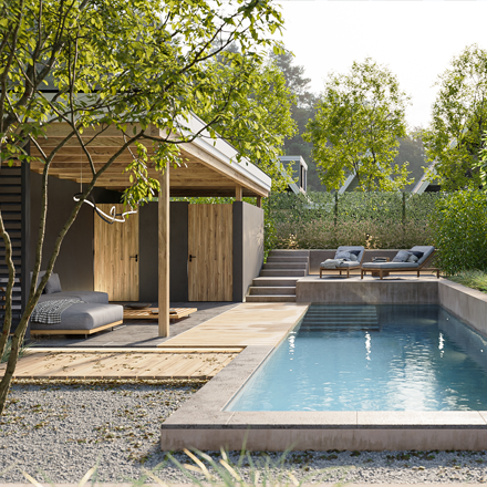 Van een compacte stadstuin met een hottub of city pool tot een luxe villatuin met een poolhouse, zwembad, jacuzzi, zonnedek en buitenkeuken.